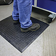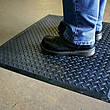 Pełna mata stanowiskowa i modułowa. Wzór powierzchni - blacha ryflowana. Matę stosuje się w środowisku suchym mokrym i zaolejonym. Mata izoluje od podłoża i zapewnia dobre właściwości ergonomiczne i antyzmęczeniowe, znajduje zastosowanie w miejscach intensywnie użytkowanych. System łączenia typu puzzle i zintegrowane najazdy pozwalają na szybkie i trwałe tworzenie stanowisk pracy o odpowiedniej wielkości.